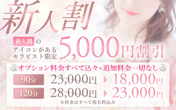 全セラピスト対象!(※新人割引中のセラピストを除く)