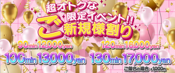ご新規様限定特別コース&料金♪100分13000円 or 130分17000円☆☆☆