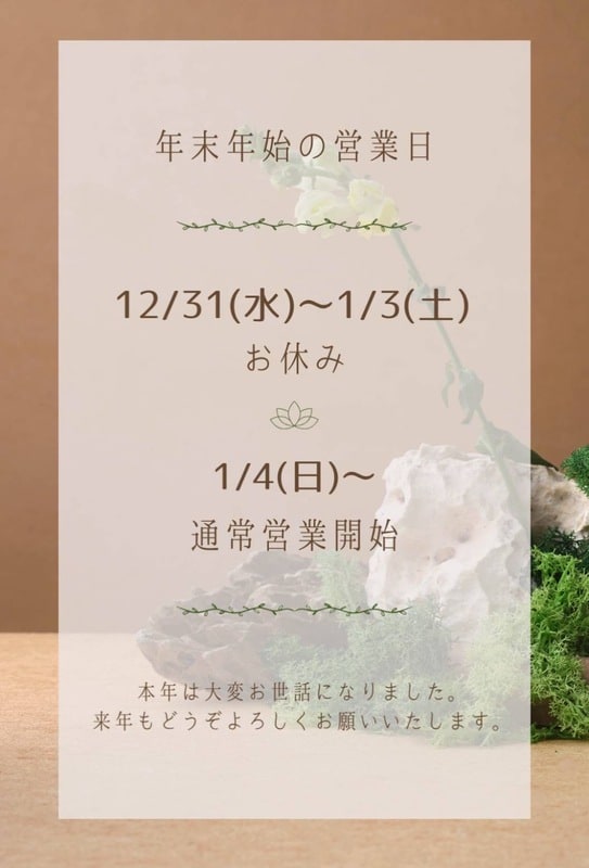 年末年始営業日のお知らせ