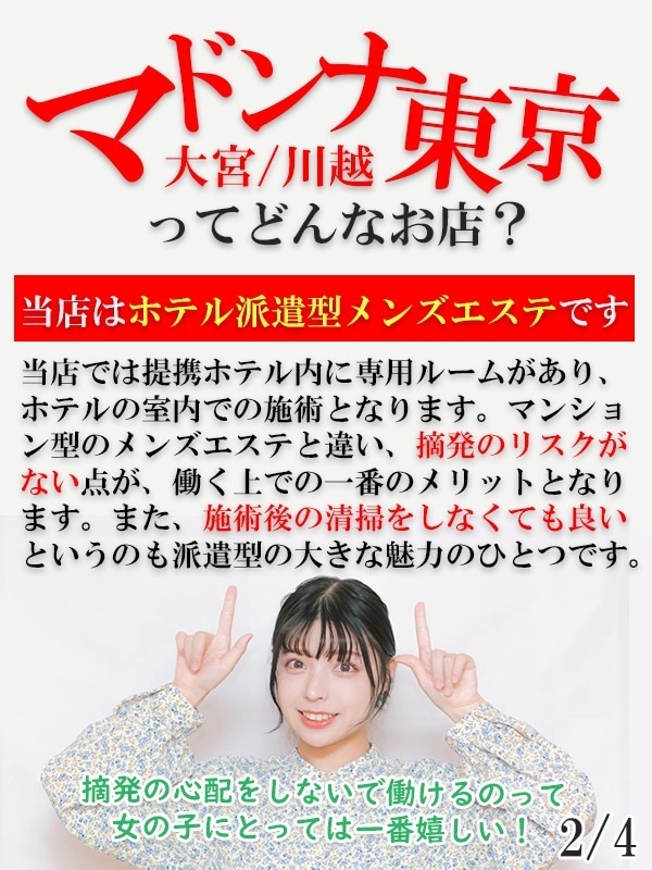 大宮駅から事務所までは徒歩5分!さらに、派遣先はホテルのみ!また、事務所から提携先のホテルまではなんと徒歩10秒!デリバリー型によくありがちな移動のストレスはゼロ!