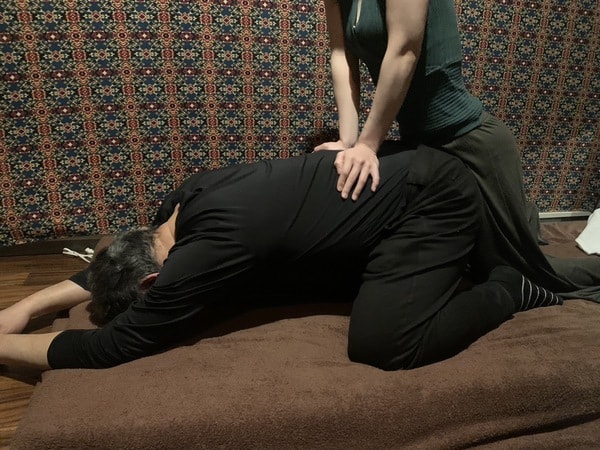 また、ストレッチを行いながら体をほぐしていくのもタイ古式マッサージの特徴の一つです。ストレッチを行うことにより柔軟性を高め、疲れがたまりにくい体に変えていきます。このため「二人でするヨーガ」ともいわれます。タイ古式マッサージと聞くと「痛そう」「アクロバティック」といったイメージをお持ちの方もいらっしゃるかもしれませんが、決して痛みを伴ったり、無理な姿勢を強いたりするマッサージではありませんのでご安心ください。
