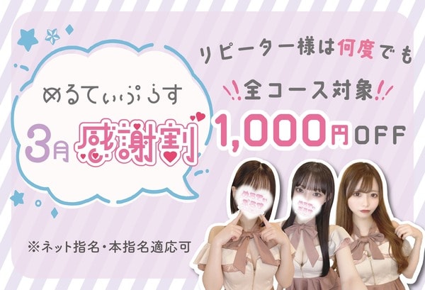 🎉全コース対象!1,000円OFF!!ご指名の場合でも適応可です♪