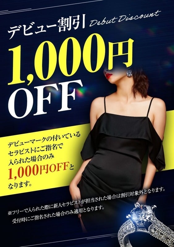 ※フリーで入られた際に新人セラピストが担当された場合は割引対象外となります。