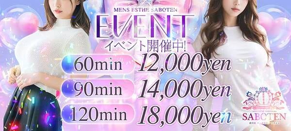 イベント開催中!!! いつでもお得に♡ 60min 14,000yen ➡ 12,000yen 90min 16,000yen ➡ 14,000yen 120min 20,000yen ➡ 18,000yen ※指名される場合は ☆一つにつき+1000円 ※本指名の場合は+2000円