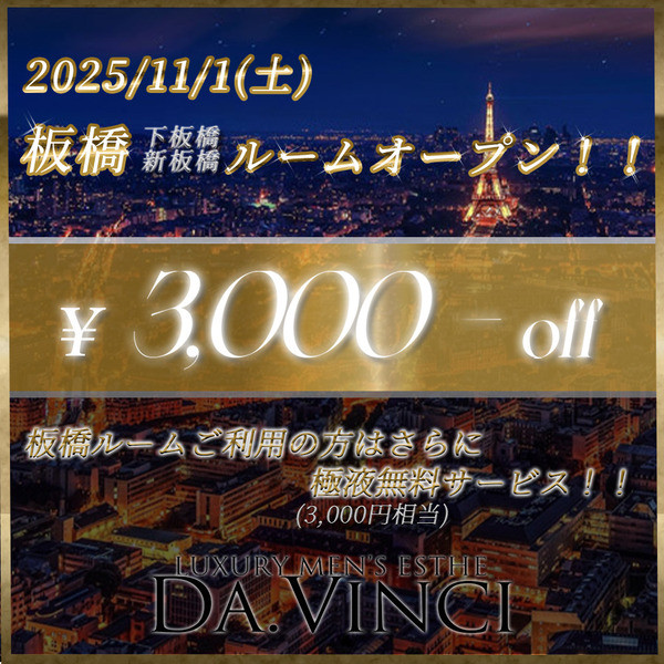 新エリア板橋、下板橋、新板橋ルームオープン記念3,000円割引!!