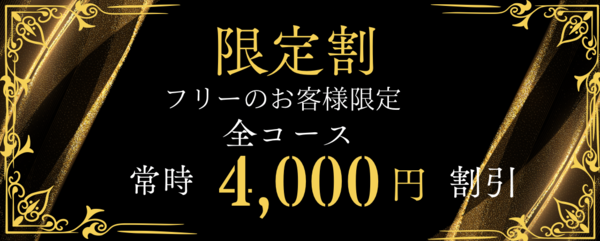 フリーのお客様限定で全コース4,000円割引でご案内いたします。