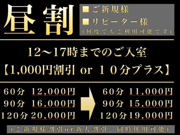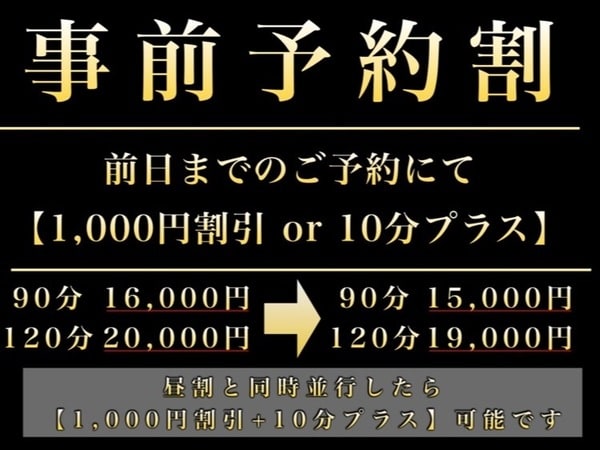 前日までのご予約ににて1,000円OFF or 10分プラス可能です!!