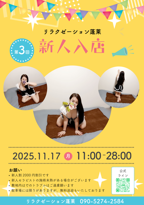 11/15 新人セラピスト入店決定。