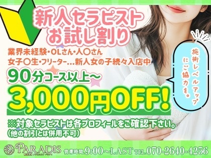 【新人セラピストさん】続々入店ですよ❤新人お試し割りあり!